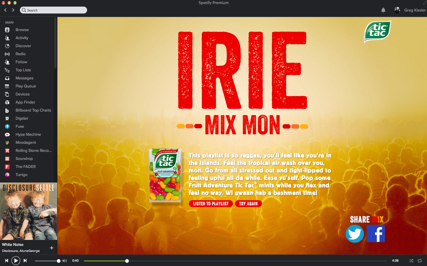 Still listening to your "Summer Jamz '09" playlist? Shake it up with the Tic Tac Mix Maker on Spotify. Just drag your worn-out playlists into any genre to funk-ify your music library.